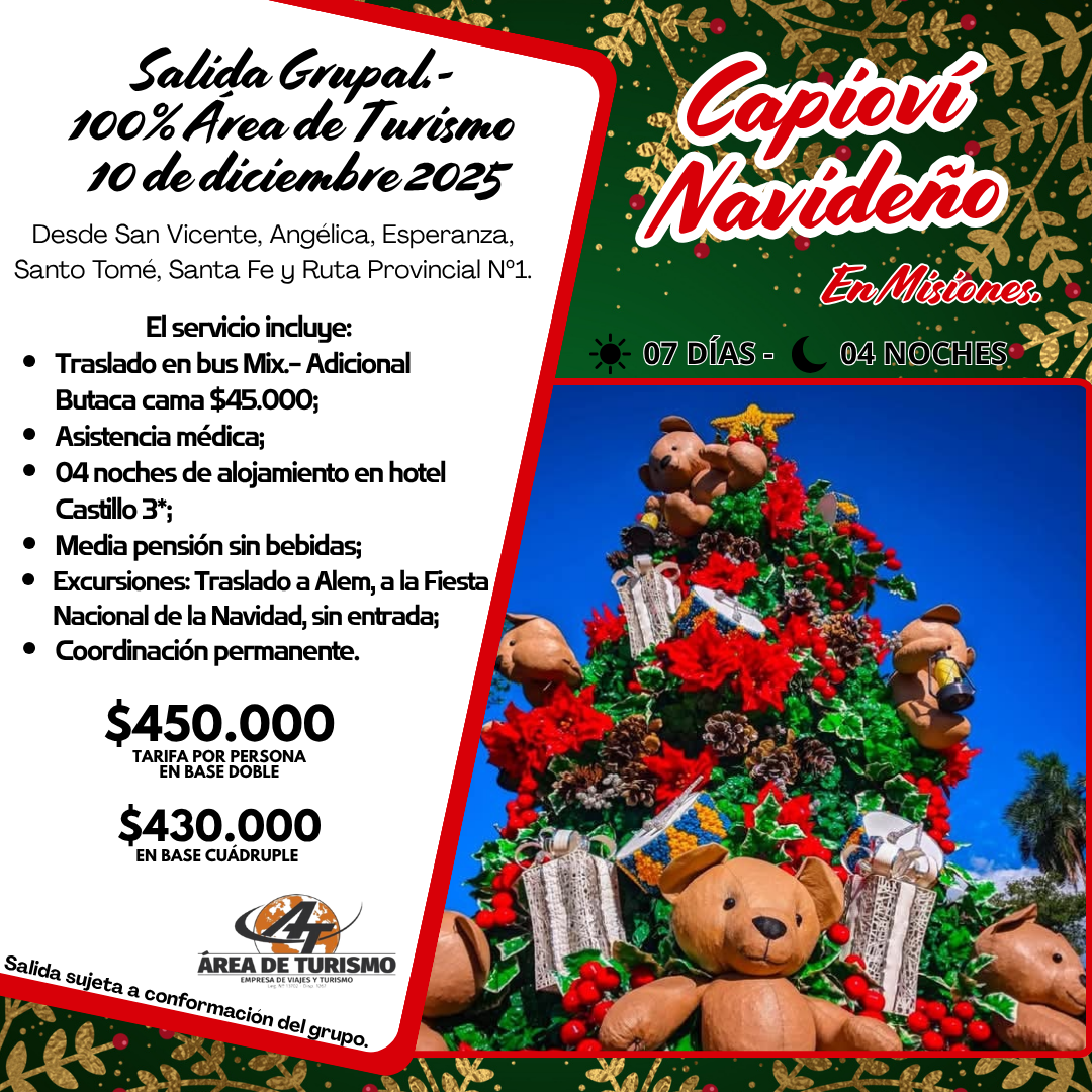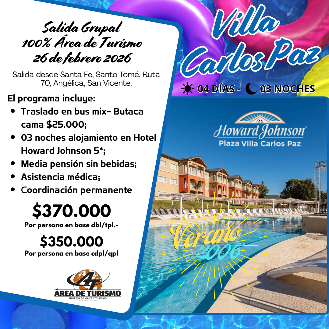 “AREA DE TURISMO” les ofrece todo tipo de viajes nacionales e internacionales, cruceros, turismo para la familia y la tercera edad con circuitos programados a la medida del cliente.